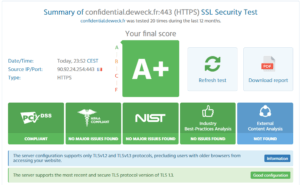 Reaching such security level has a counterpart, sometime your own system to connect to our solution will not meet our requirement but in such case we will be able to explain you how to reach it easily. For instance, older web browsers will probably not work. This is the price to ensure you full confidentiality and the unique “contrepartie” for you.