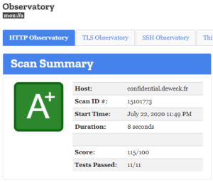 Mozilla Observatory with score of 115/100 ! :